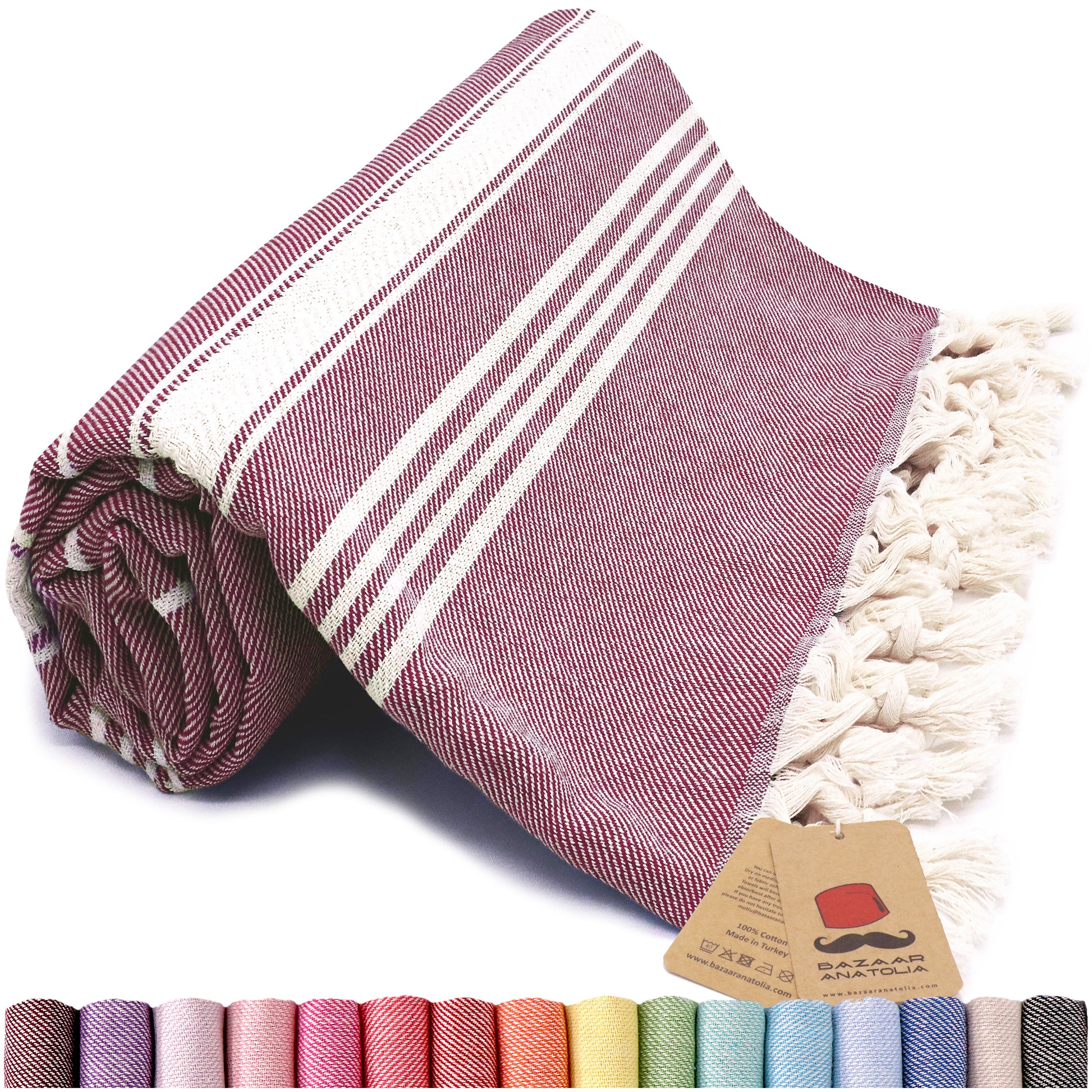 Stripe Turkish Beach & Peshtemal Towel - Maroon